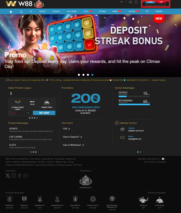 - W88 พนันกีฬา และการเดิมพันสด