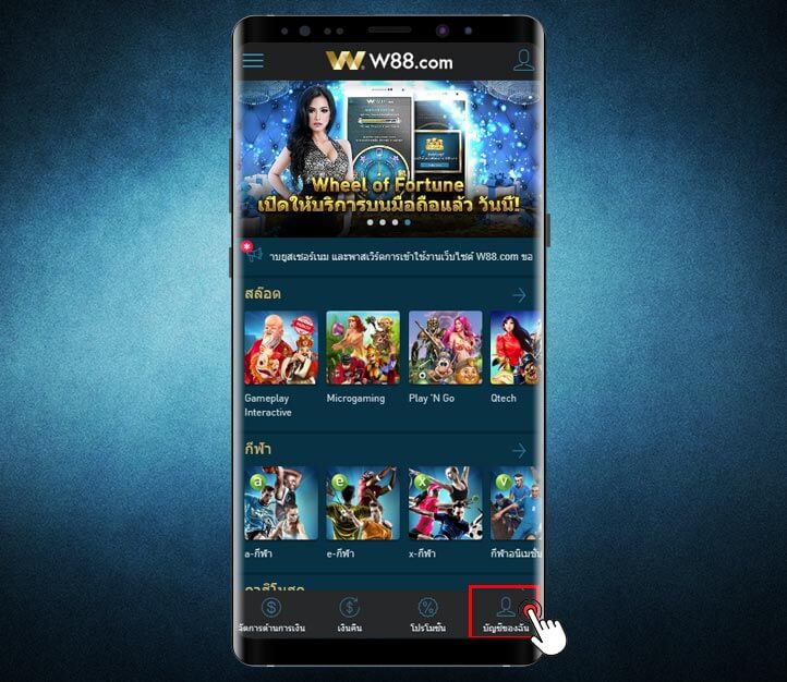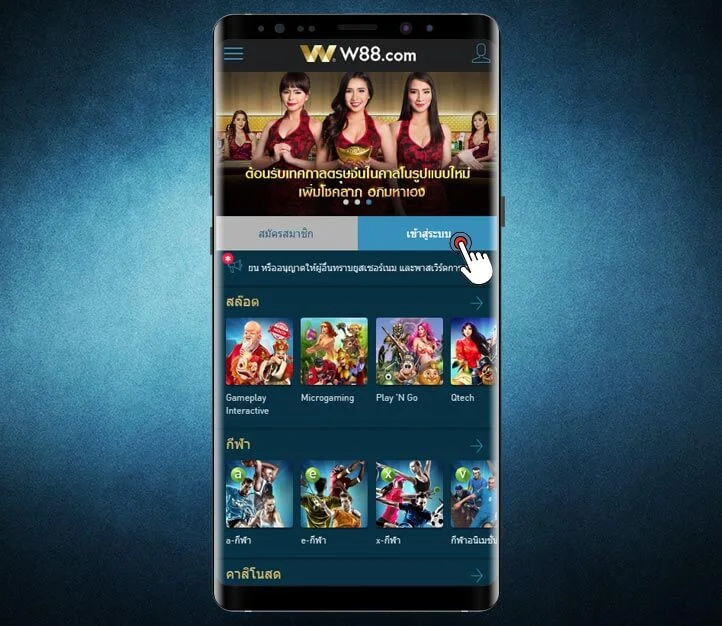 - แตะที่ ทางเข้า W88 มือถือ