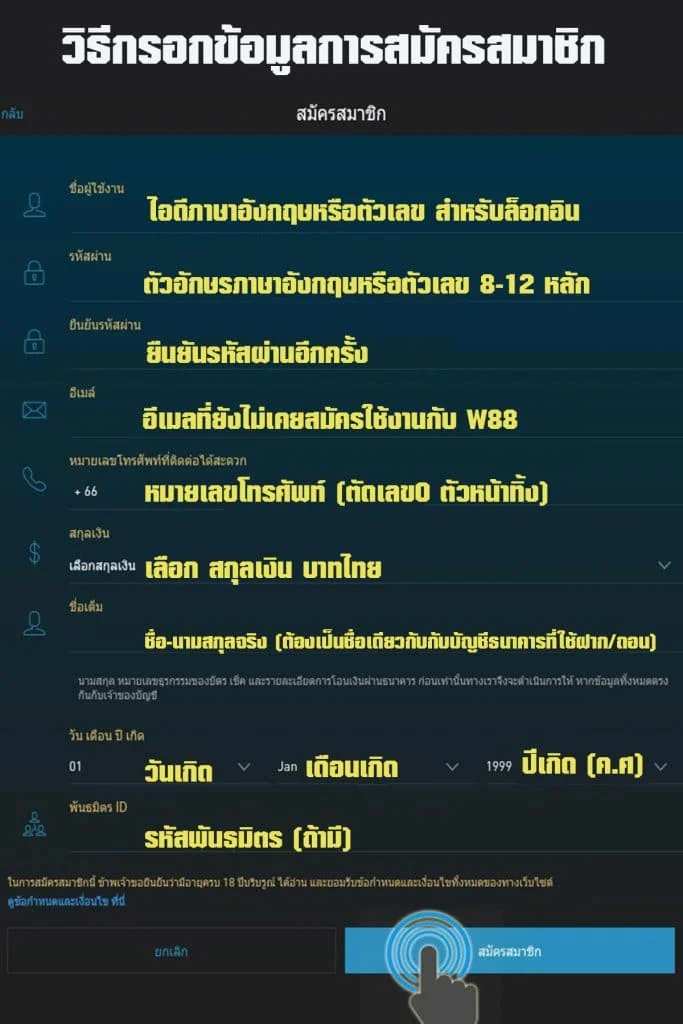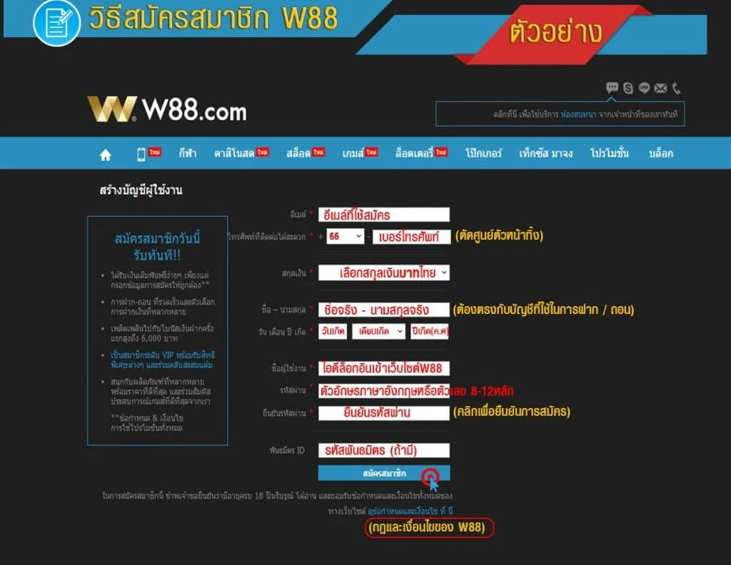 วิธีสมัครสมาชิก W88