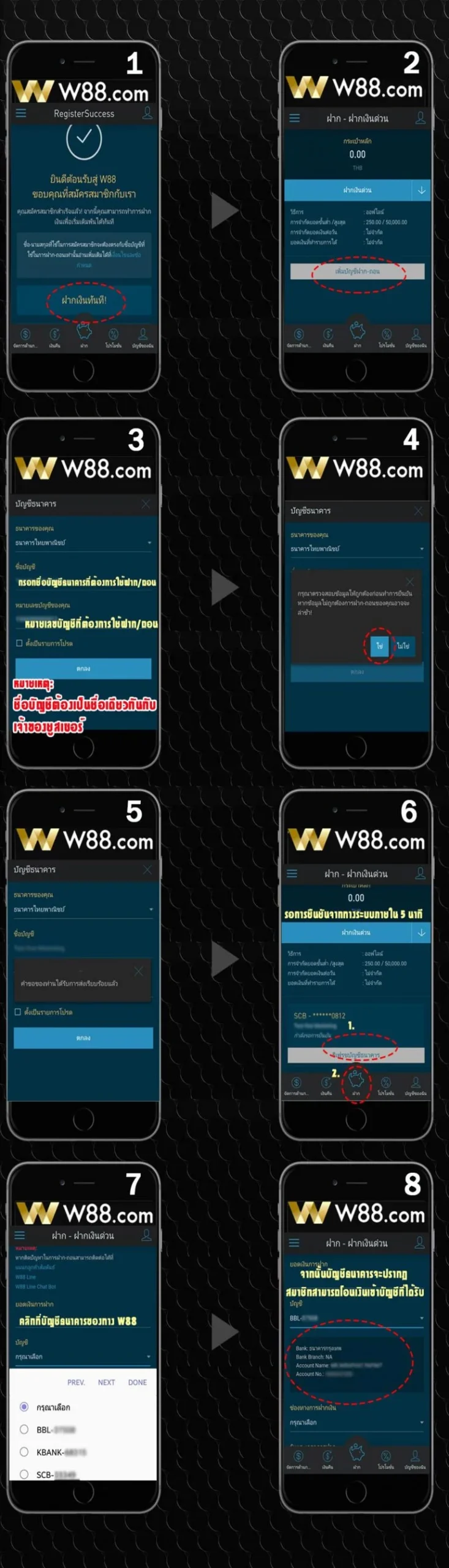 คู่มือการฝากและถอนเงิน W88
